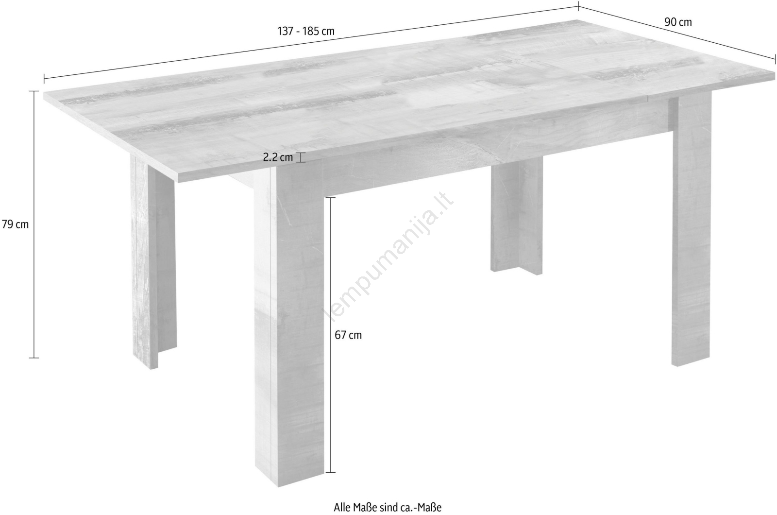 • Išskleisto stalo matmenys: 185 x 90 cm.