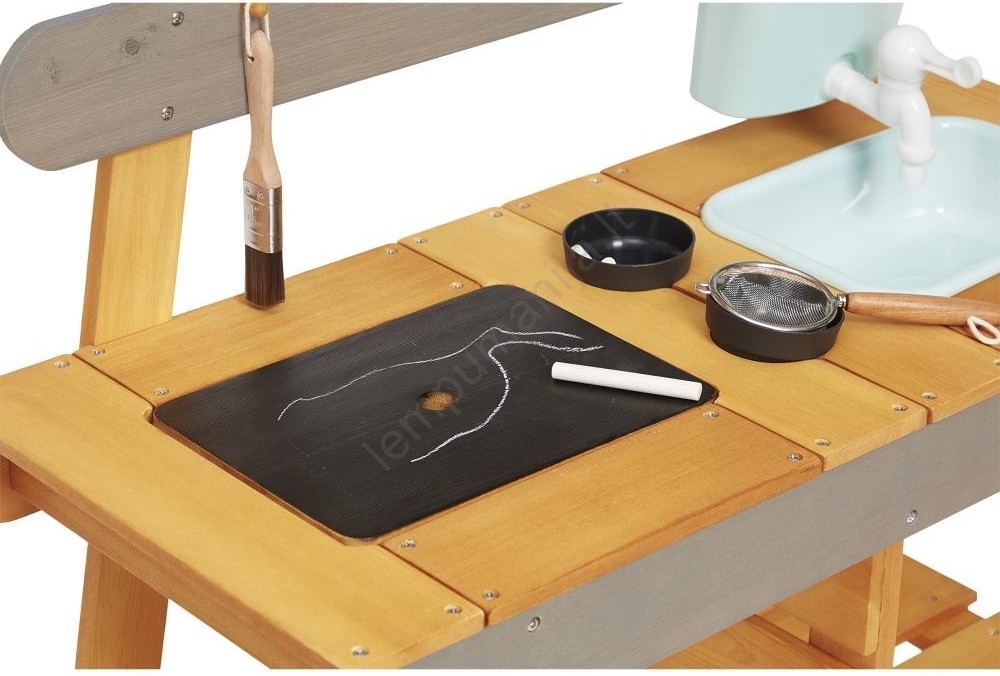 • Medinė lauko virtuvėlė skatina kūrybiškumą ir domėjimąsi gamta bei suteikia daug pramogų žaidžiant gryname ore.