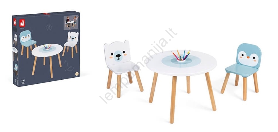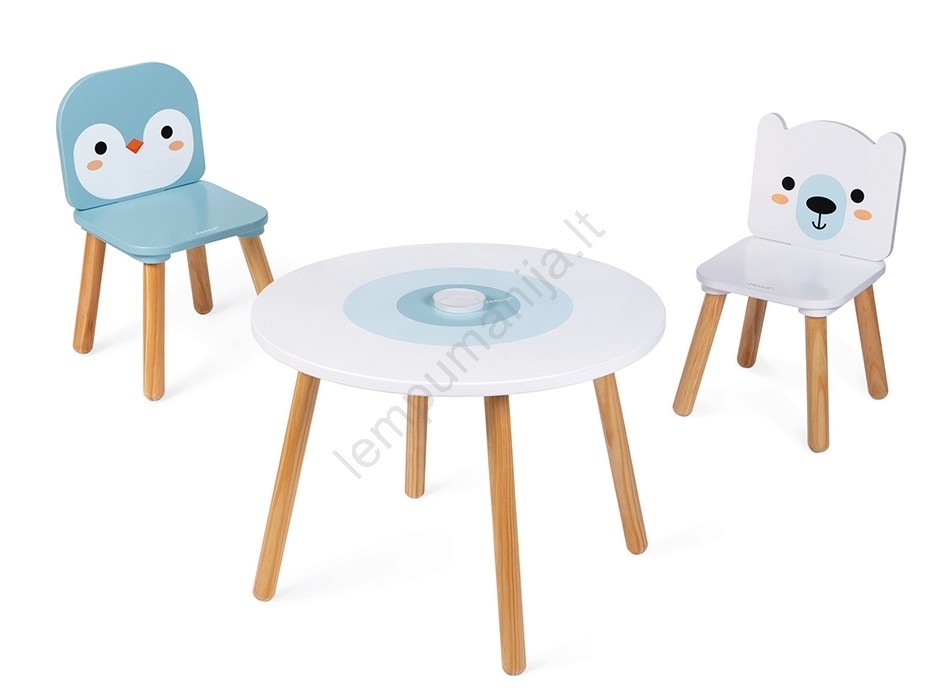 • Šis spalvingas stalas su 2 kėdėmis ir arktinių gyvūnų motyvais yra puikus priedas vaikų kambariui.