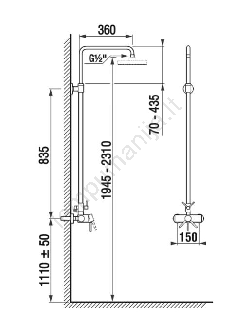 • Dušo komplektas su vieno svirties maišytuvu.
