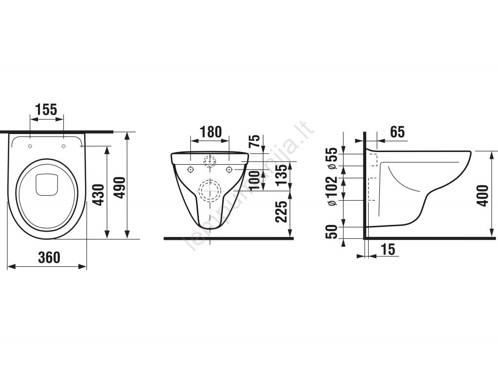 • Pakabinamas unitazas.