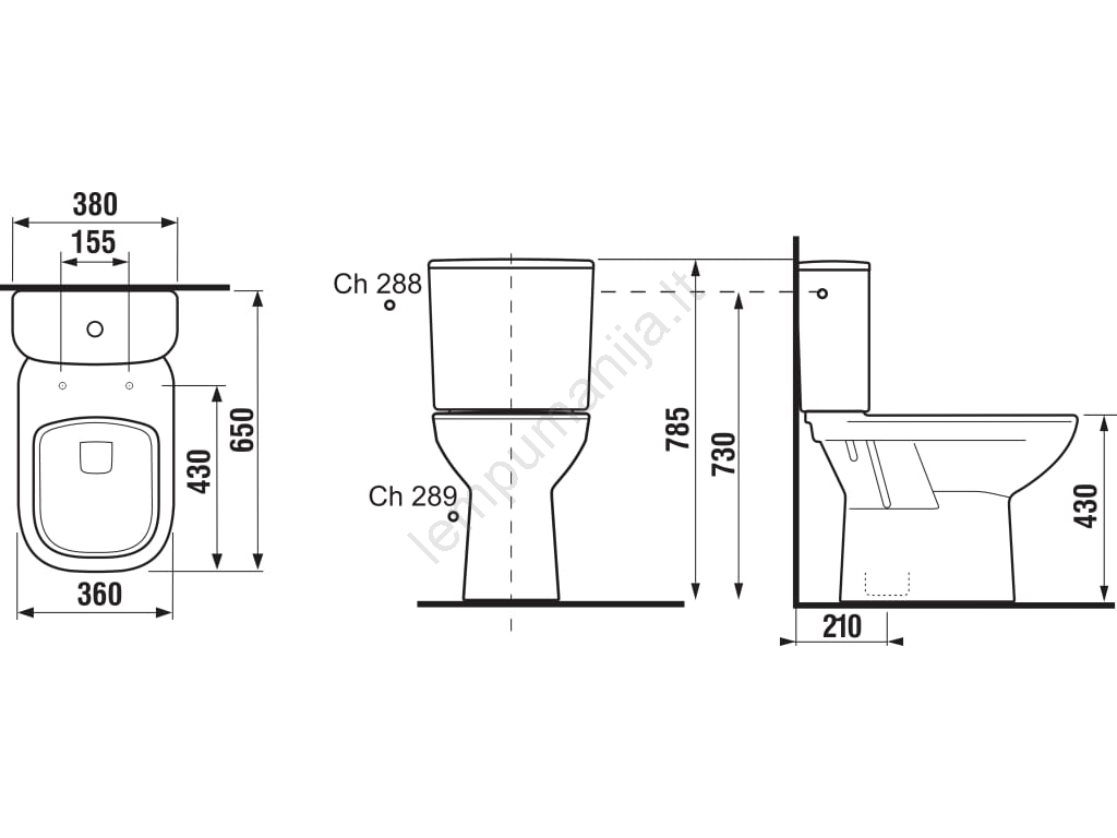 • Į komplektą įeina bakas su Dual Flush nuleidimo mechanizmu — nuleidimas 3 arba 4,5 l.