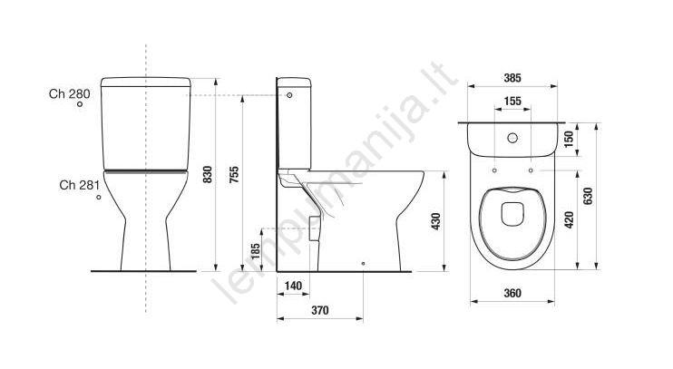 • Stovintis klozetas su keraminiu nuleidimo bakeliu.