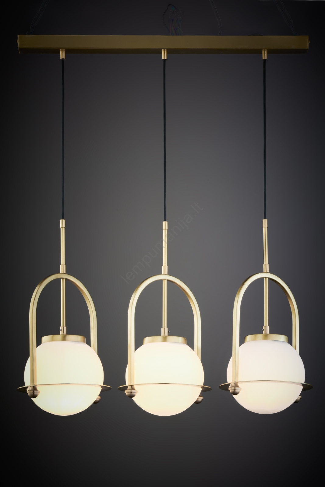 Jupiter 1917 - Pakabinamas šviestuvas ant laido ROSSO 3xE27/15W/230V, aukso spalvos pasižymi gražiu ir funkcionaliu dizainu.  Šviestuvui tinka lemputė su E27 dangteliu. Čia galite įsigyti kitų lempučių palankiomis kainomis. Įdomus jūsų namų priedas.
