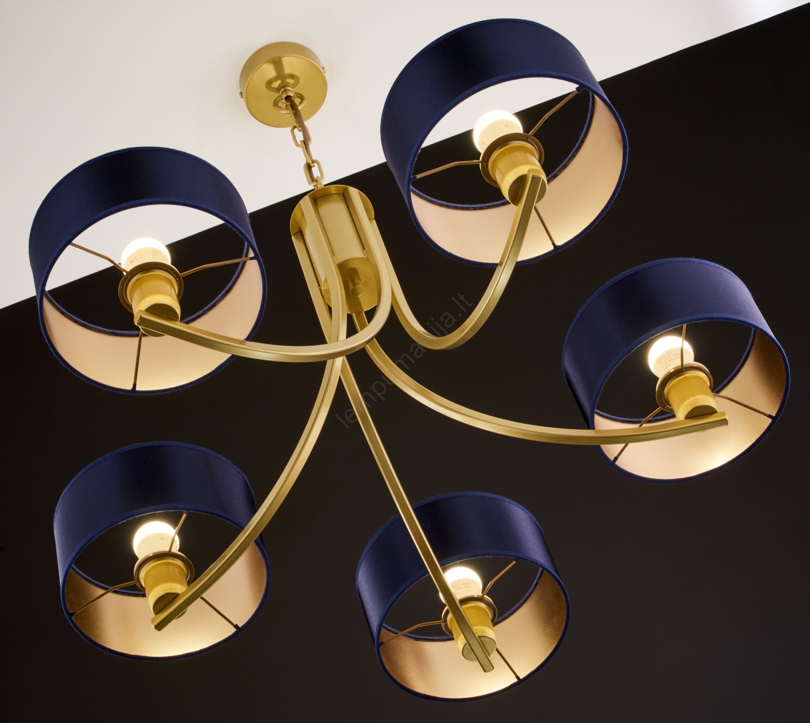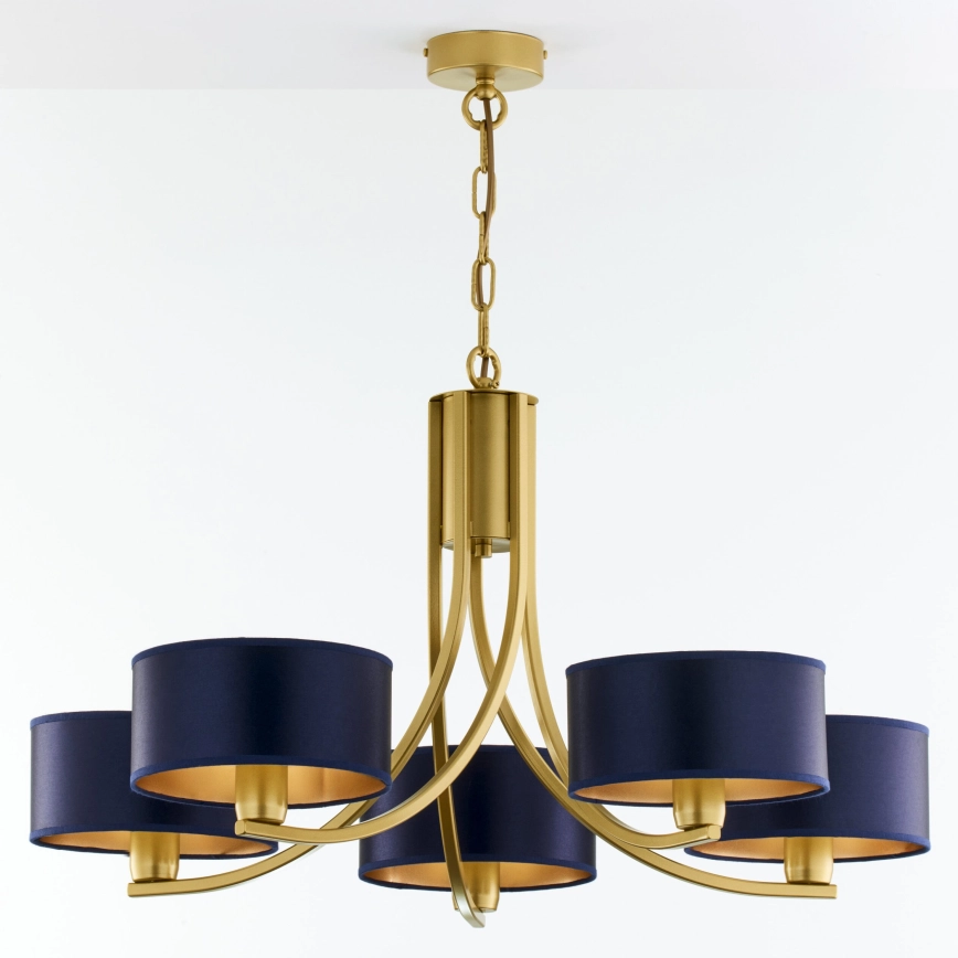 Jupiter 2094 - Pakabinama liustra ant grandinės ARTHUR 5xE27/15W/230V mėlyna/auksinė | Lempumanija