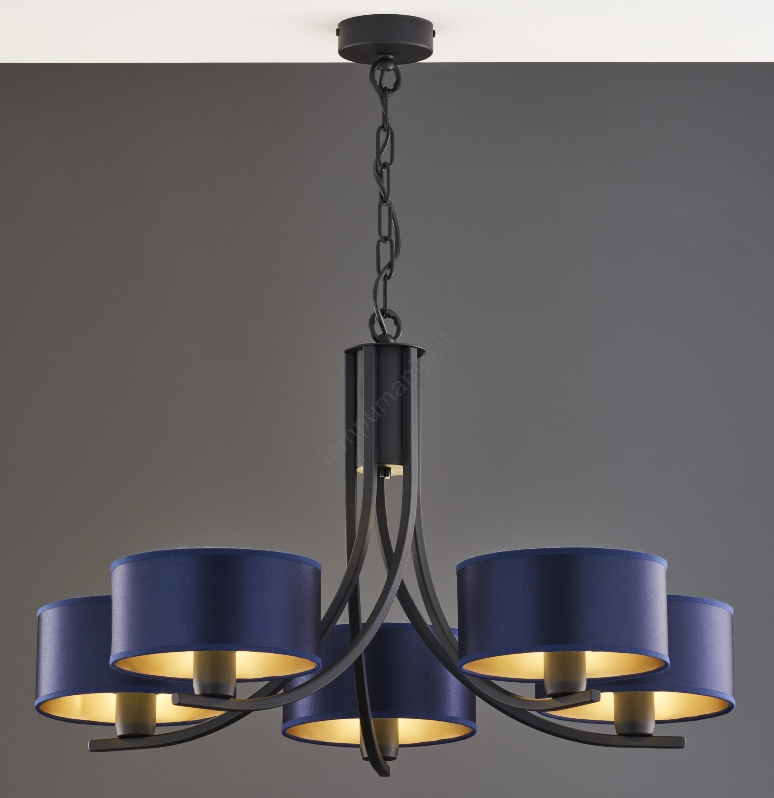 • Jupiter 2094 - Pakabinama liustra ant grandinės ARTHUR 5xE27/15W/230V mėlyna/auksinė