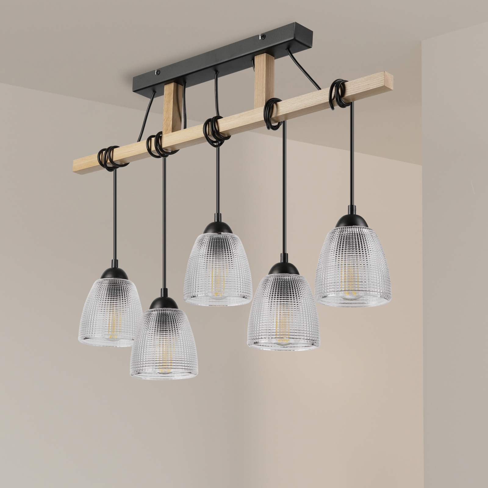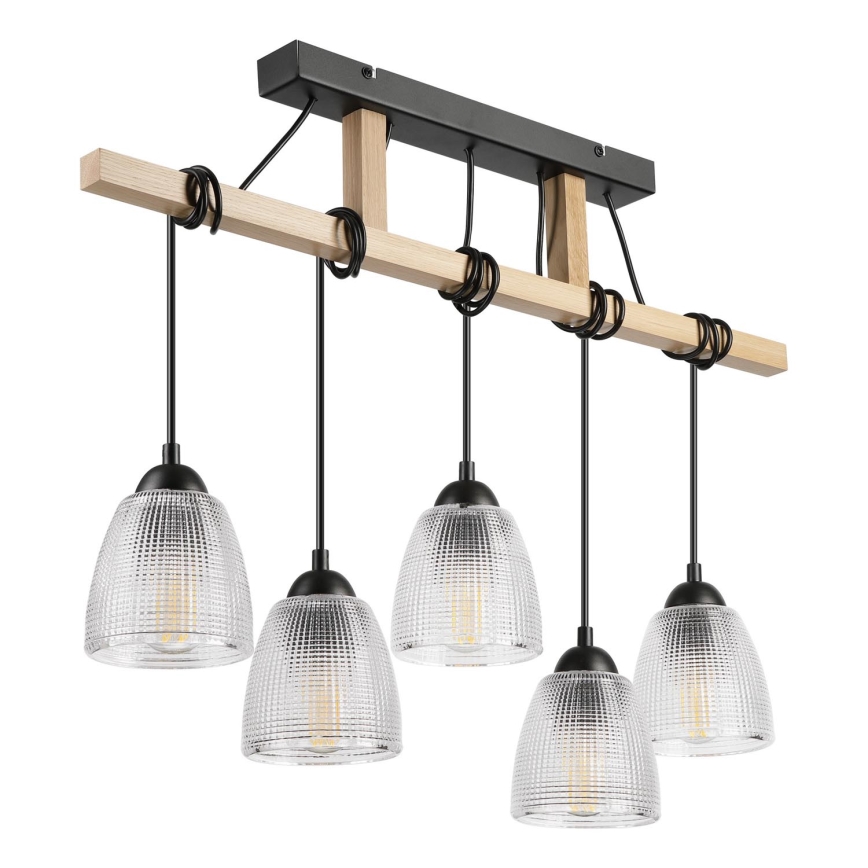 Kabantis šviestuvas su trosu LEANDRA 5xE27/15W/230V ąžuolas/juodas