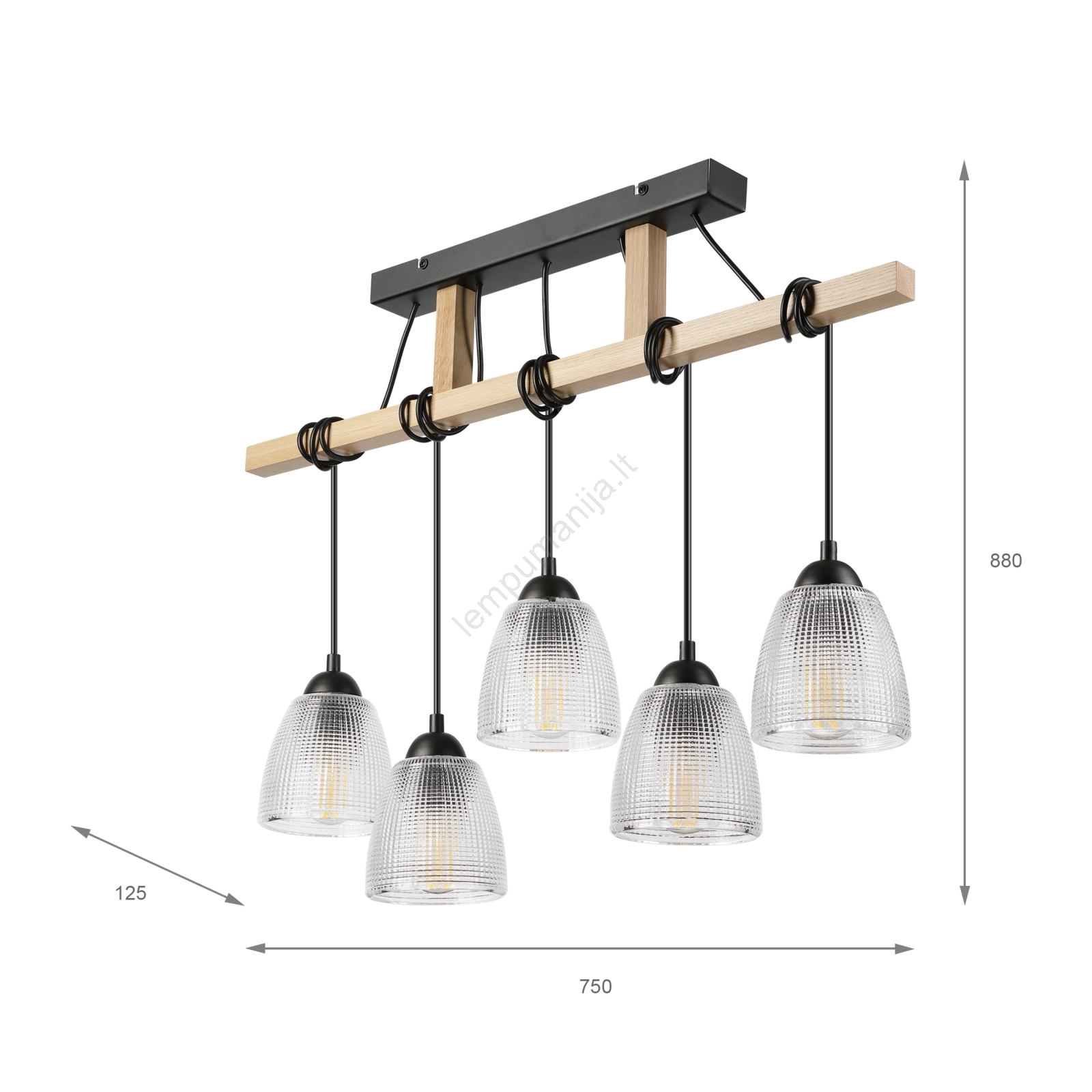 Kabantis šviestuvas su trosu LEANDRA 5xE27/15W/230V ąžuolas/juodas pasižymi gražiu ir funkcionaliu dizainu.  Šviestuvui tinka lemputė su E27 dangteliu. Čia galite įsigyti kitų lempučių palankiomis kainomis. Įdomus jūsų namų priedas.