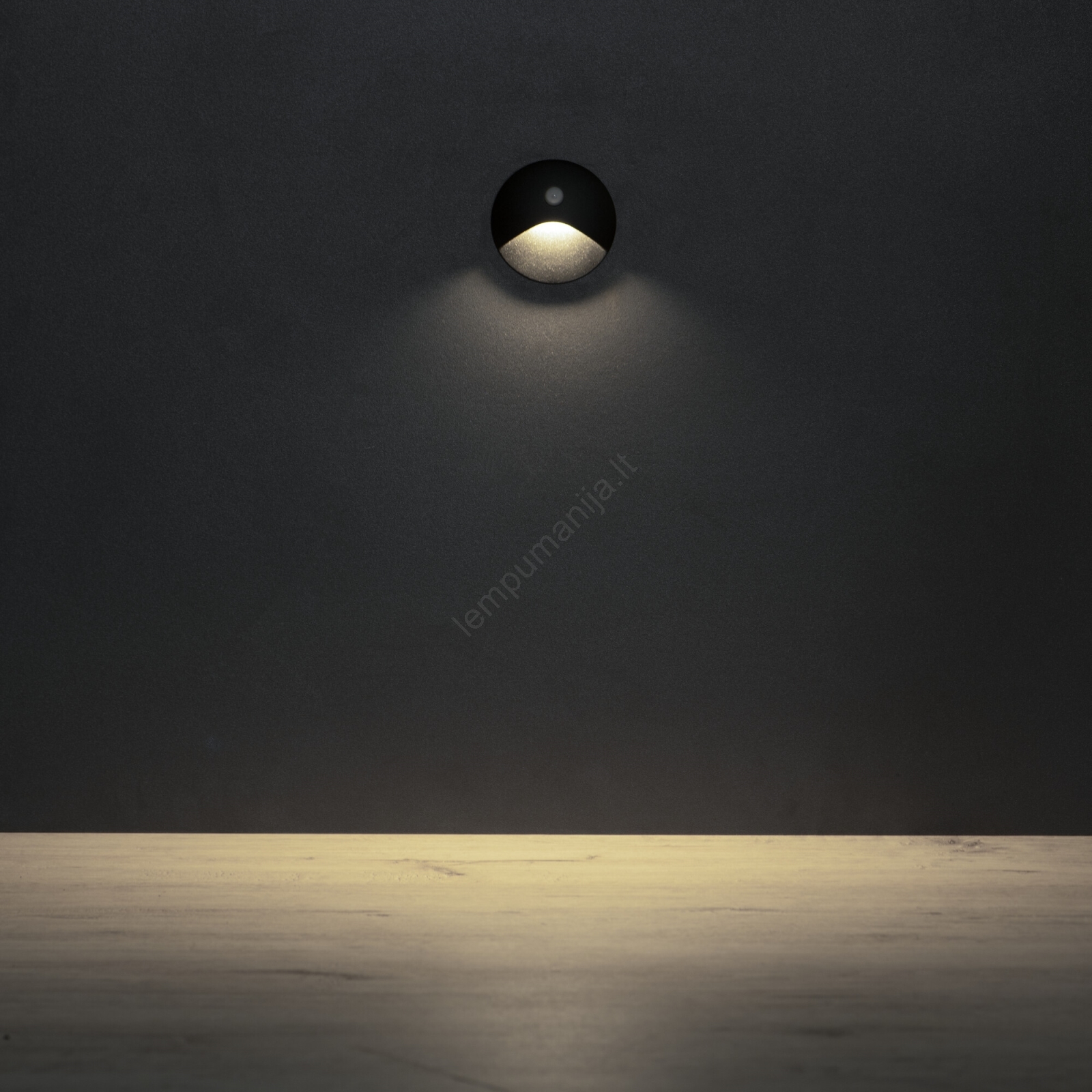 Kanlux 39136 - LED laiptų šviestuvas su jutikliu EXIN 2,5W/230V 4000K IP65 juodas, apvalus | Lempuma