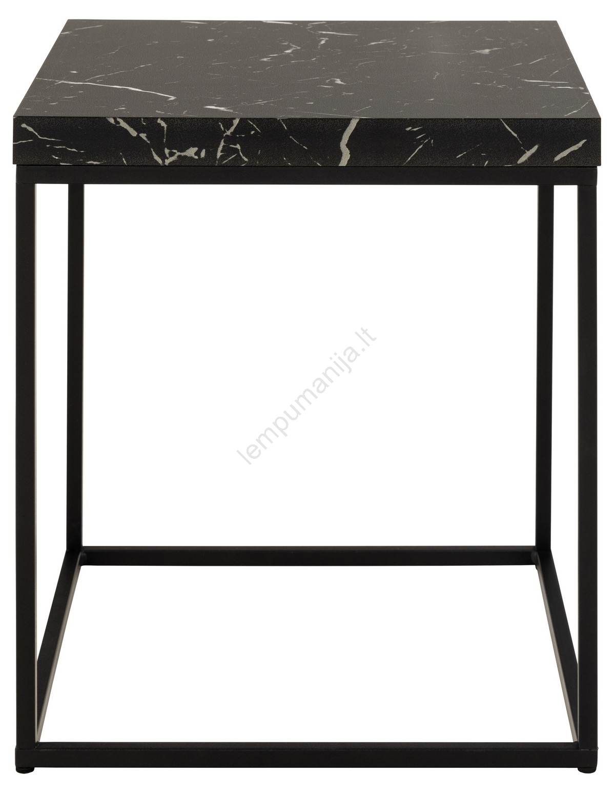 • Stalviršis: juodas „Marquina“ marmuras — tekstūruotas melamino paviršius; pagrindas: matinė juoda, grubiai milteliniu būdu dažyta plieninė konstrukcija.