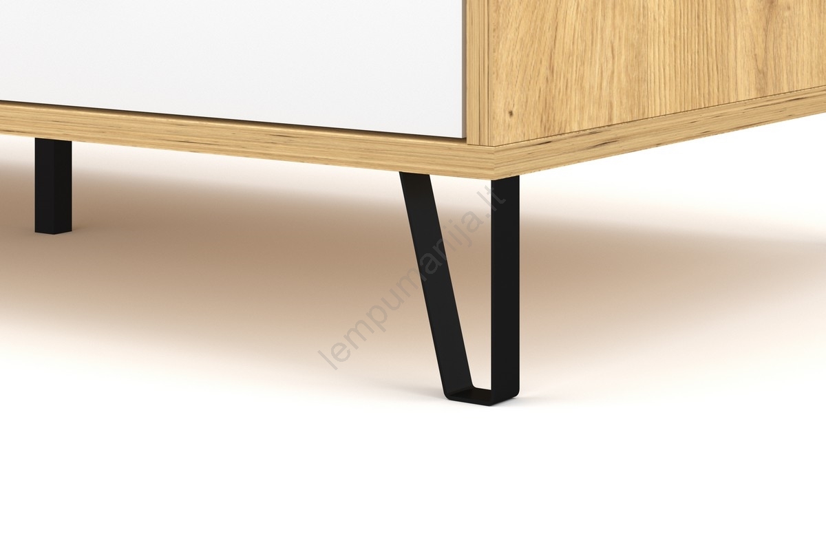 • Jame yra dvi atviros lentynos ir du stalčiai su vertikaliais grioveliais, kurie suteikia rafinuotą vizualinį efektą.