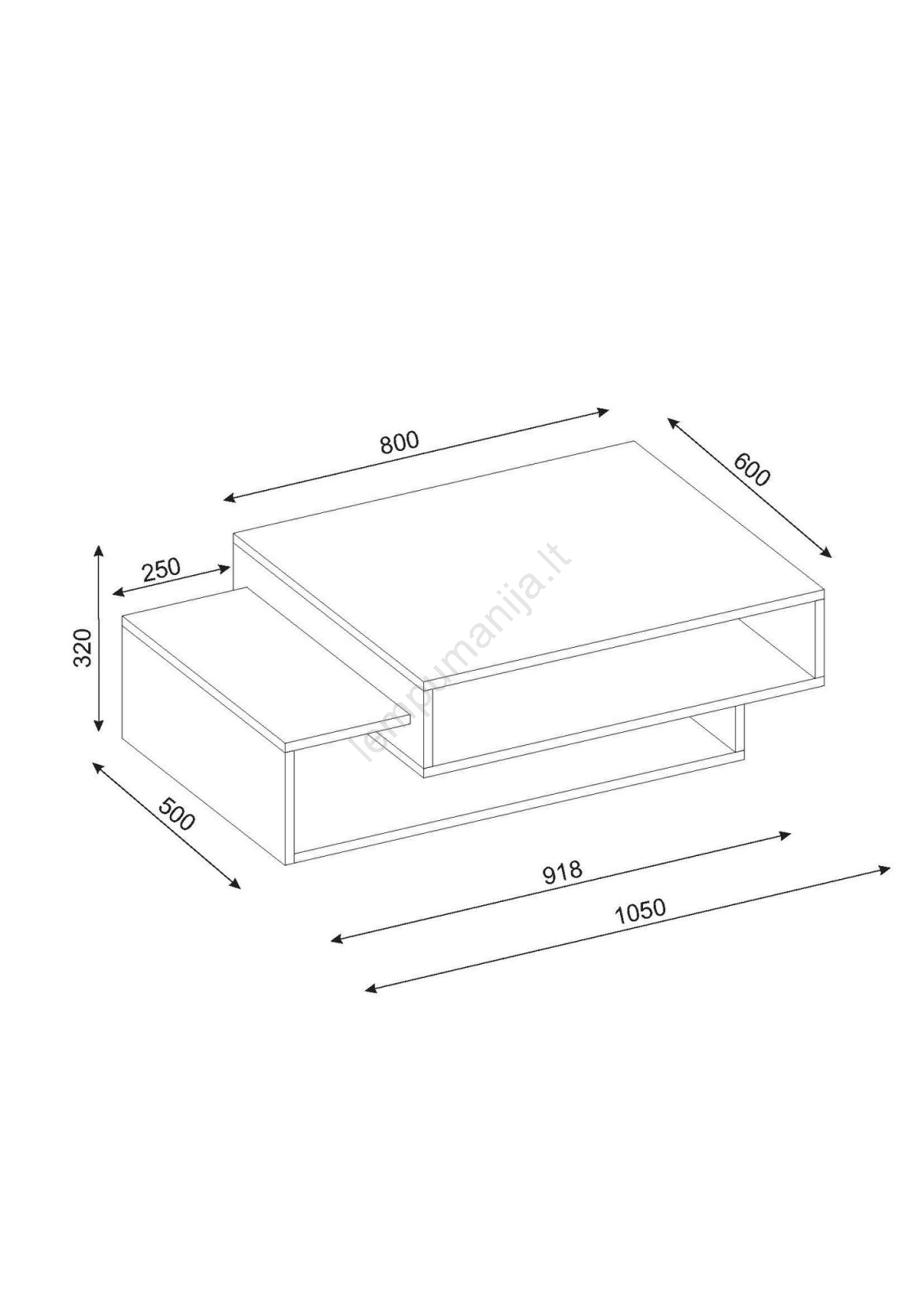 • Pagamintas iš laminuotos medžio drožlių plokštės.