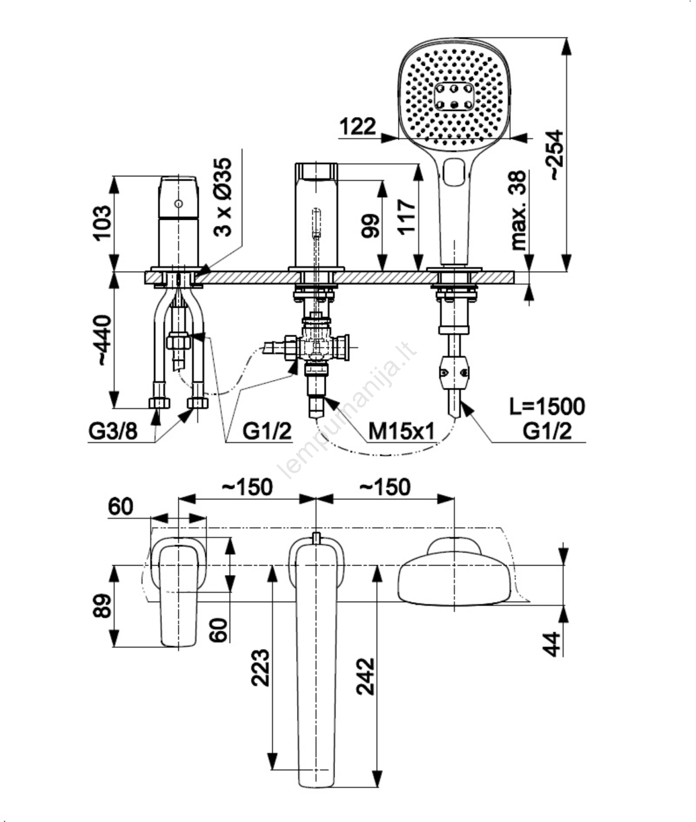 • Šis 3 angų vonios maišytuvas yra elegantiškas kiekvienos vonios papildinys.