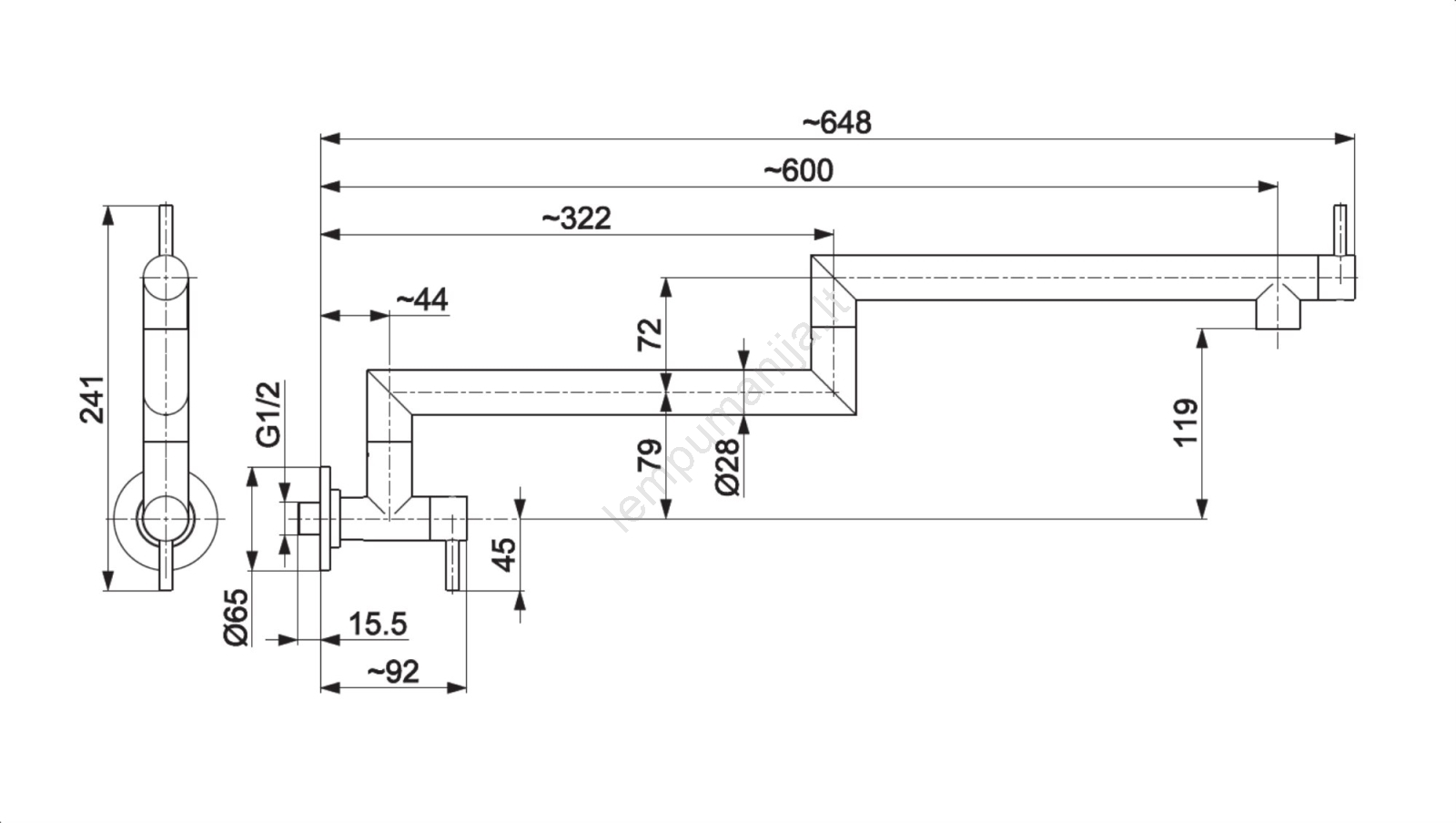 • Maks. čiaupo išsikišimo ilgis: 60 cm.