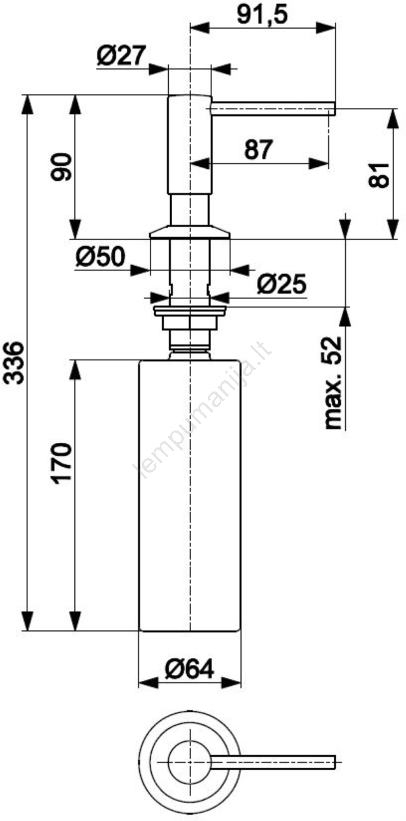 KFA Armatura 990-100-22 – įmontuojamas DUERO muilo dozatorius, nerūdijantis plie | Lempumanija