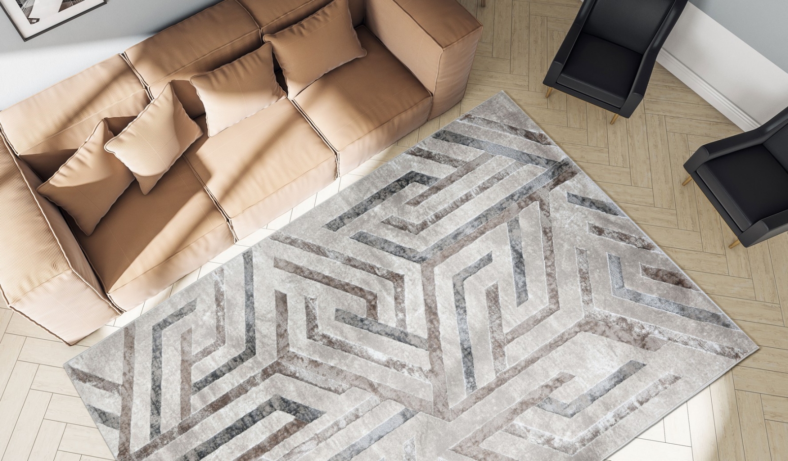 • Modernus ir funkcionalus kilimas su geometriniu raštu.