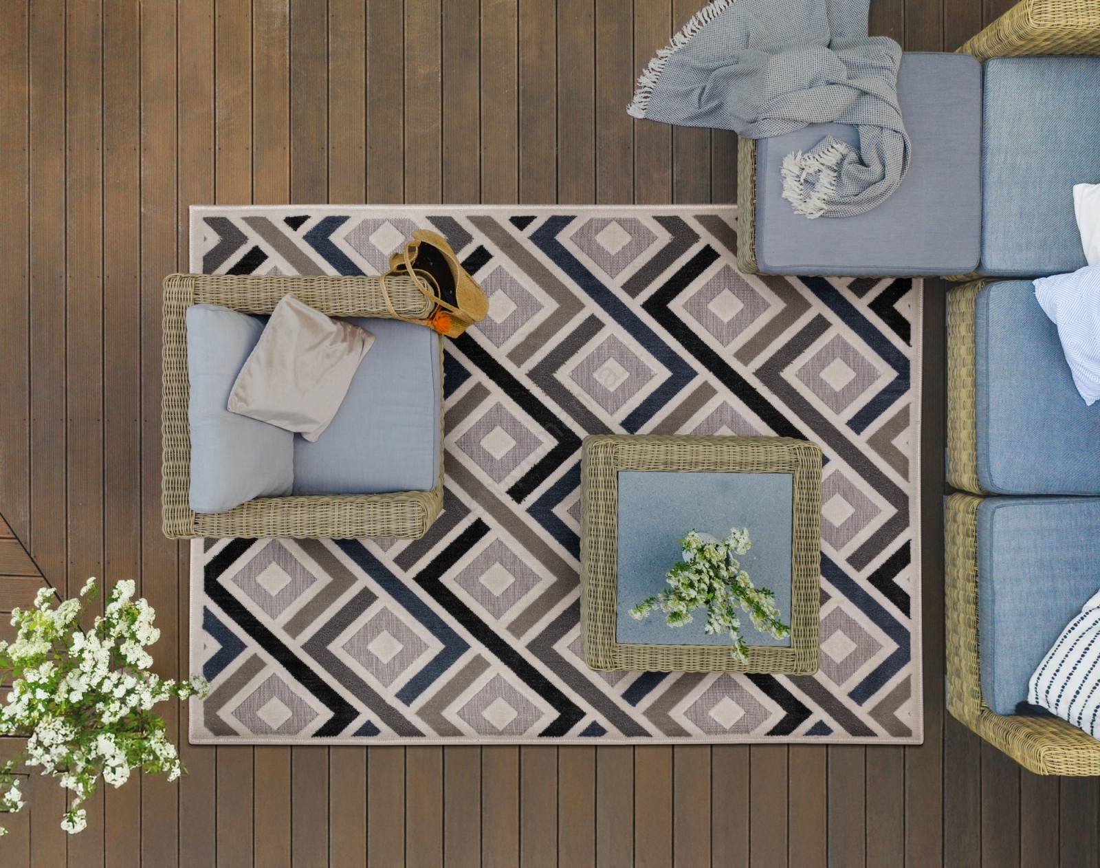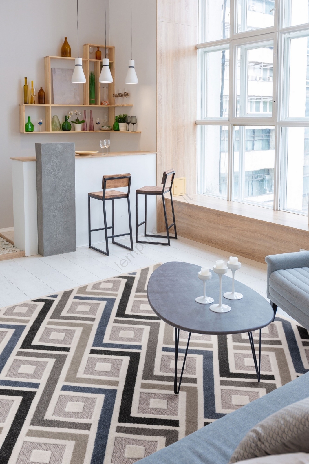 • Stilingas ir elegantiškas kilimas su geometriniais raštais.