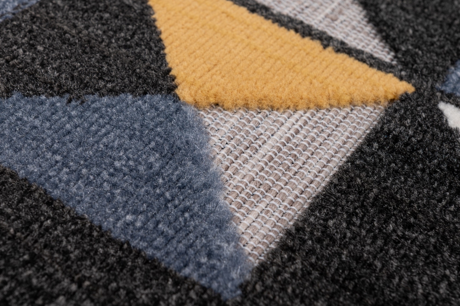 • Kilimo paviršius turi modernų geometrinį raštą ir nevienodą plauko aukštį, suteikdamas kilimui 3D efektą.