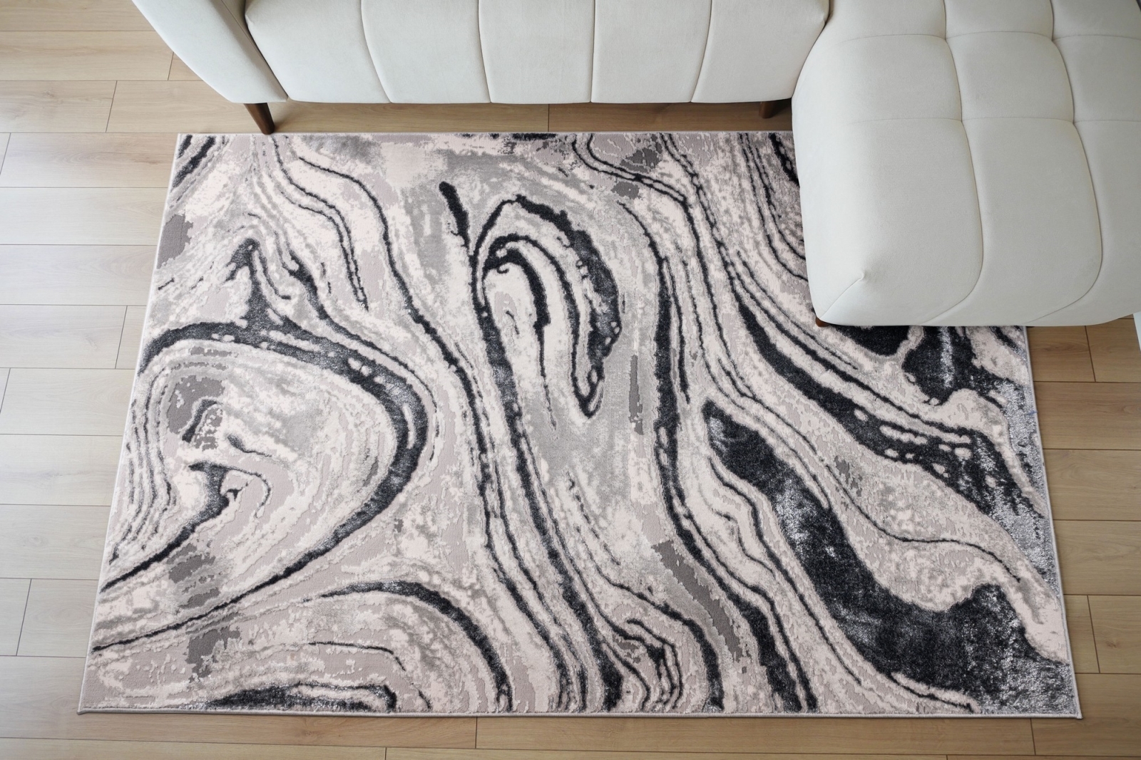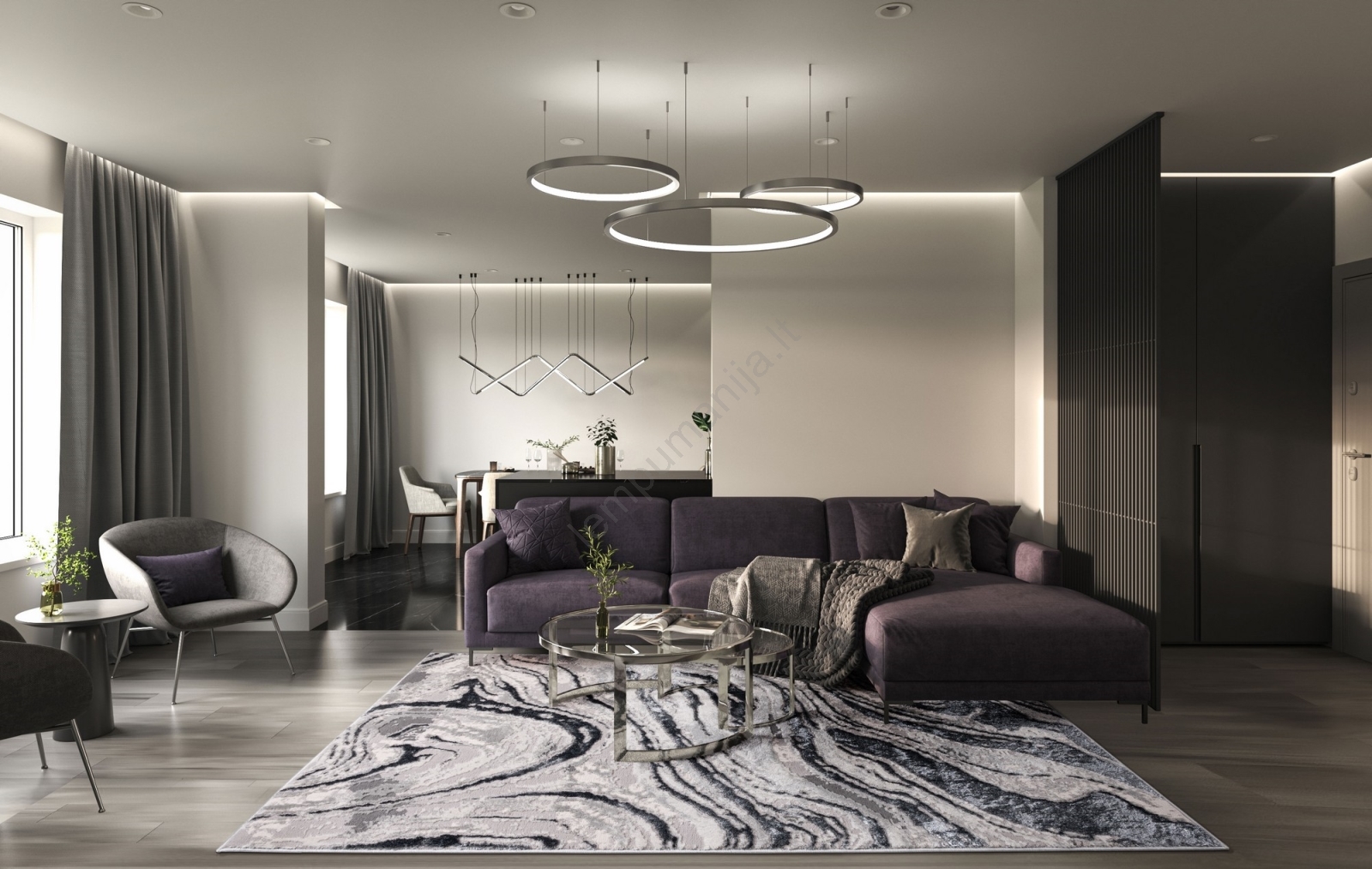 • Estetiškas ir modernus kilimas su subtiliais abstrakčiais raštais.