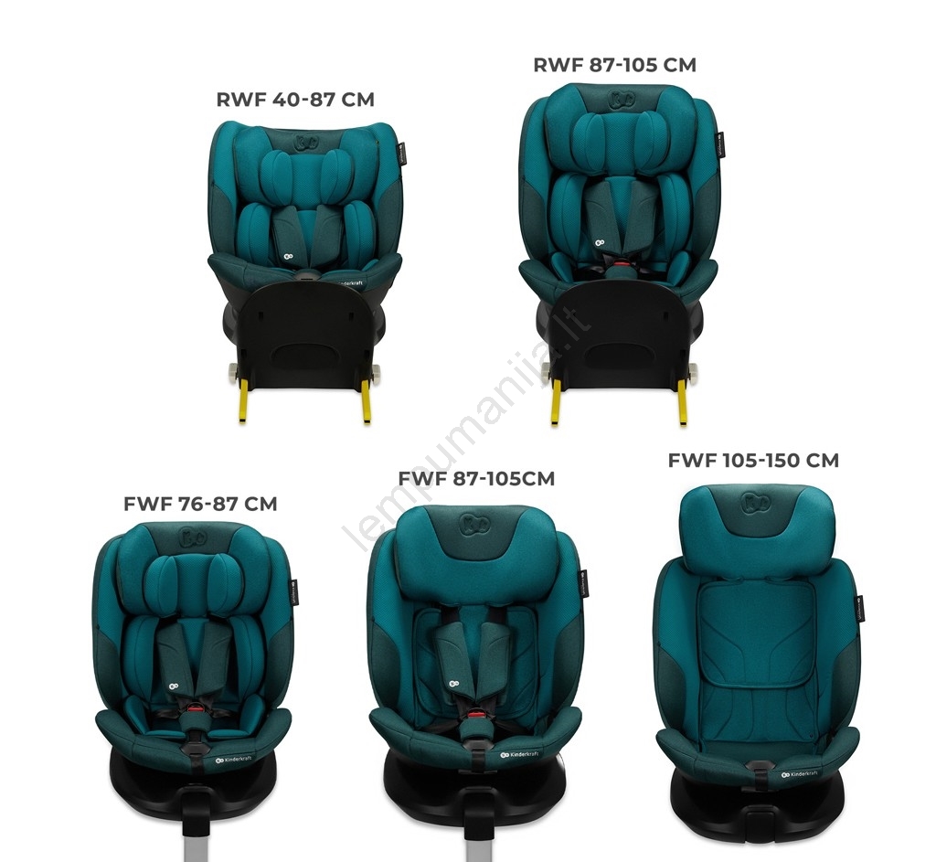 • Važiavimas prieš eismą (RWF) galimas iki 4 metų amžiaus, kas ženkliai padidina apsaugą priekinio smūgio atveju.
