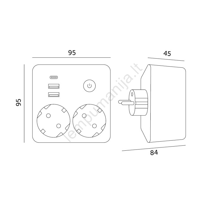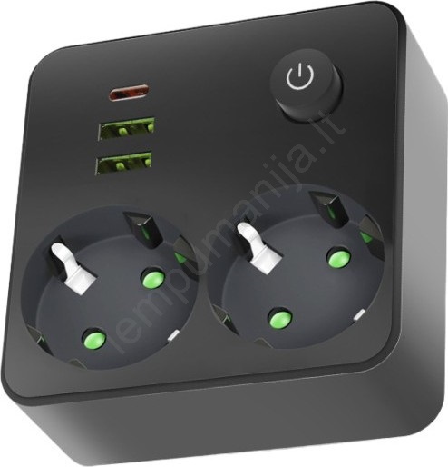 Kištukų juosta su jungikliu LINEA 2x230V + 3xUSB A/C SCHUKO juoda | Lempumanija