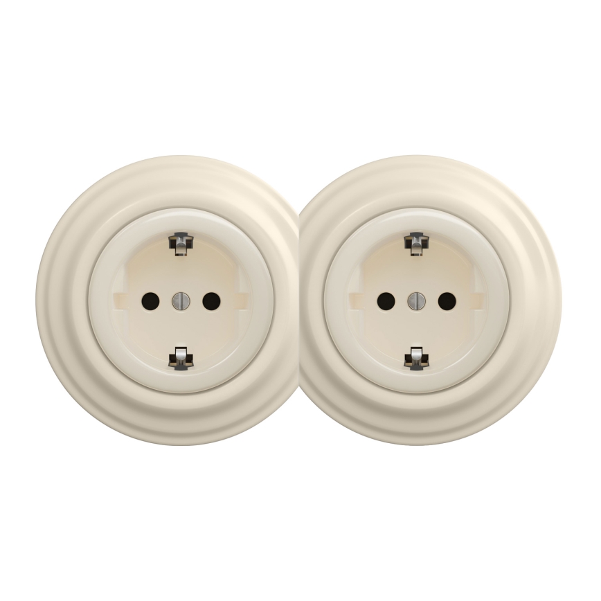 Kliklap - Dviguba retro namų rozetė su rėmeliu SCHUKO 230V/16A smėlio spalvos