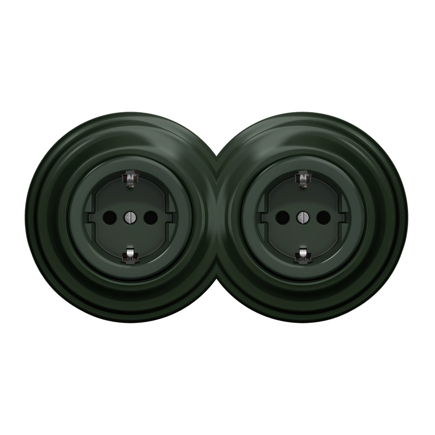 Kliklap - Dviguba retro rozetė namams su rėmeliu SCHUKO 230V žalia