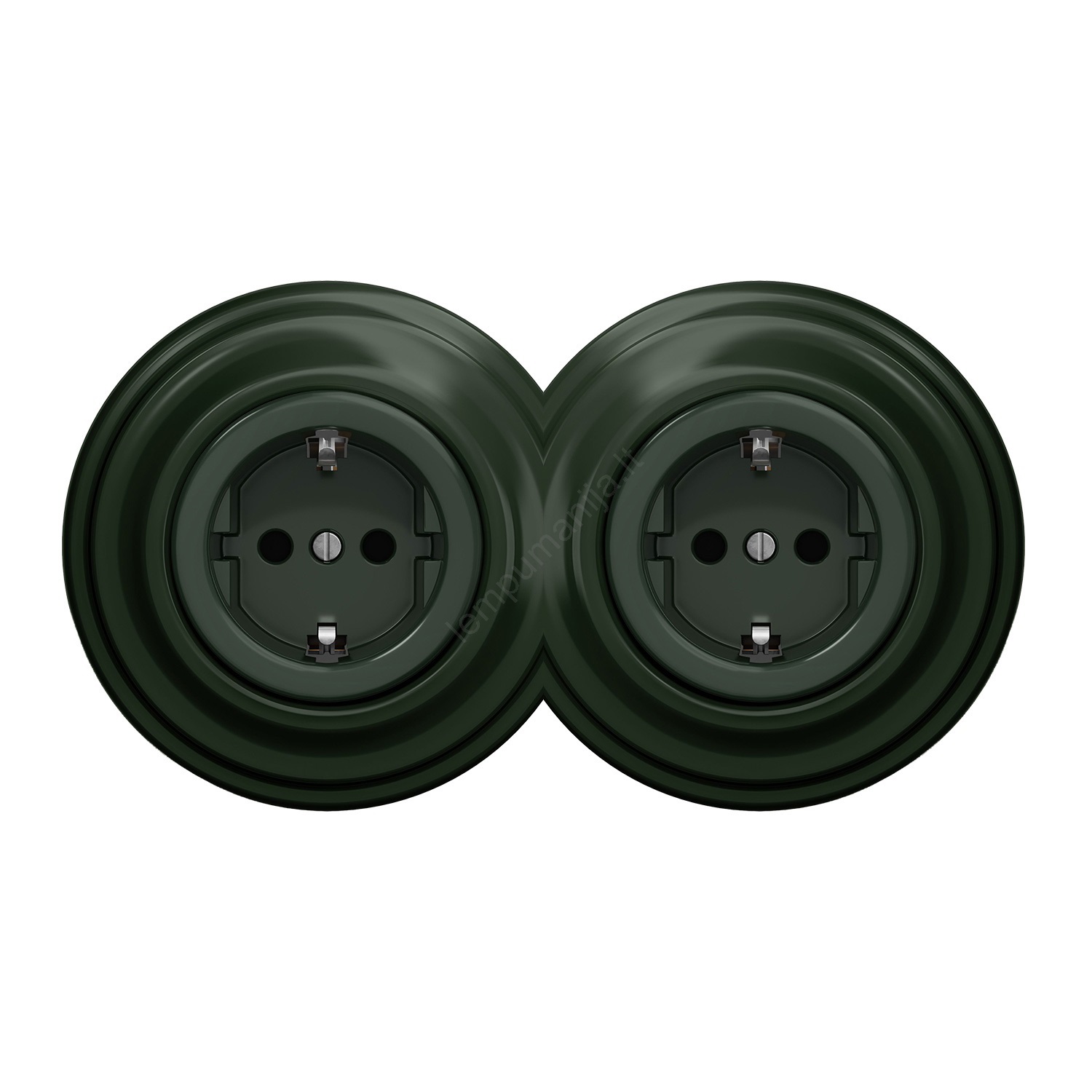 Kliklap - Dviguba retro rozetė namams su rėmeliu SCHUKO 230V žalia | Lempumanija