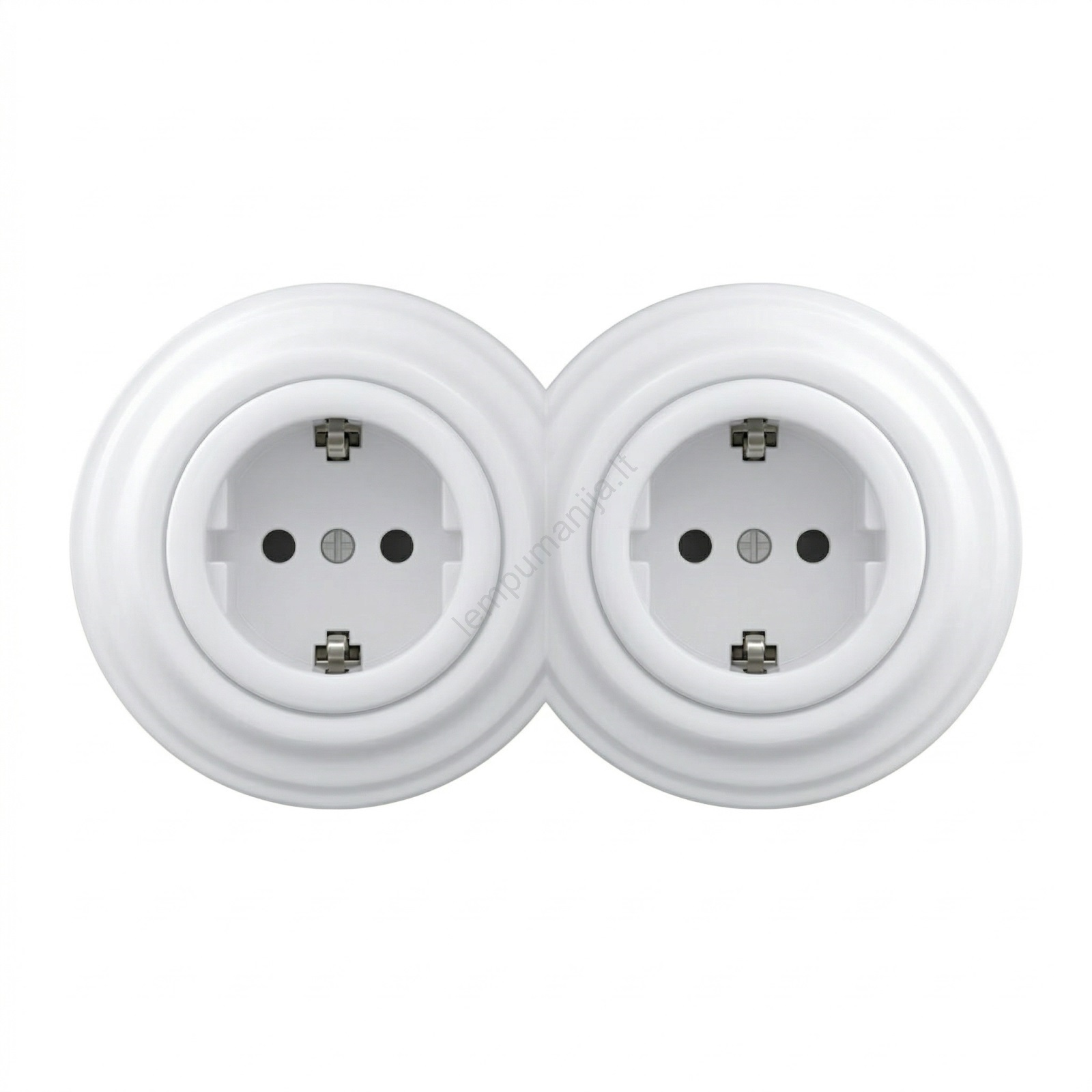 • Kliklap - dviguba retro rozetė su SCHUKO rėmeliu, 230 V, sniego baltos spalvos