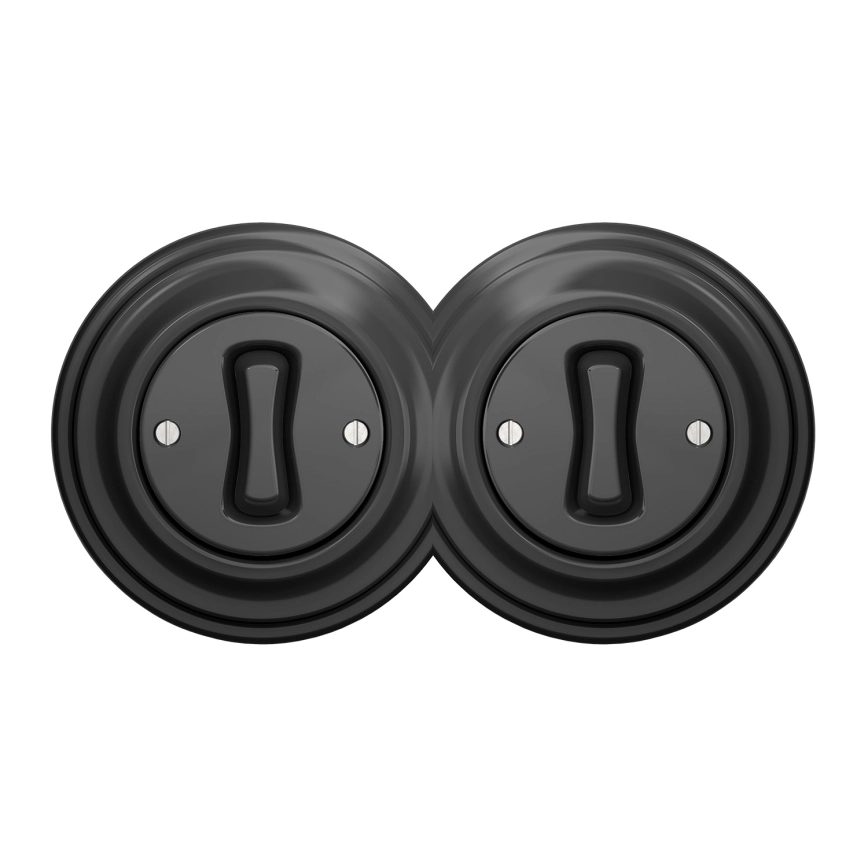 Kliklap - dvigubas retro vienpolinis jungiklis su rėmeliu Nr. 1, antracito spalvos