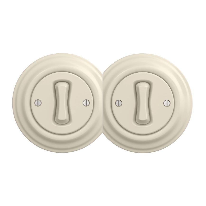 • Kliklap - Dvigubas retro vienpolinis jungiklis su rėmeliu Nr. 1 smėlio spalvos