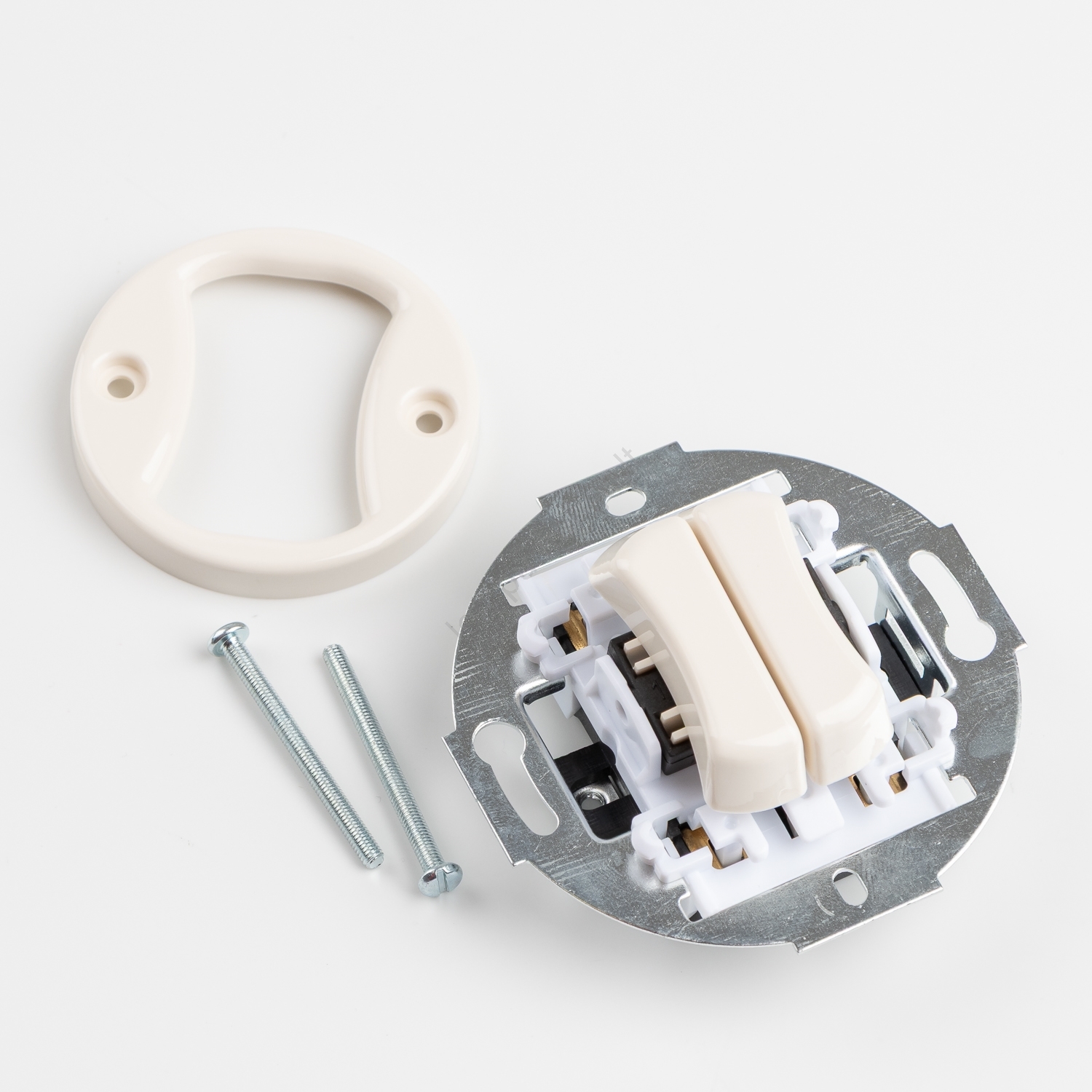 • Apskritas jungiklis smėlio spalvos.