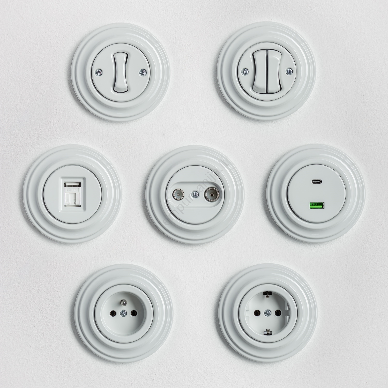 • Kliklap - retro dvigubas laiptų jungiklis su rėmeliu nr. 6+6, keraminės baltos spalvos