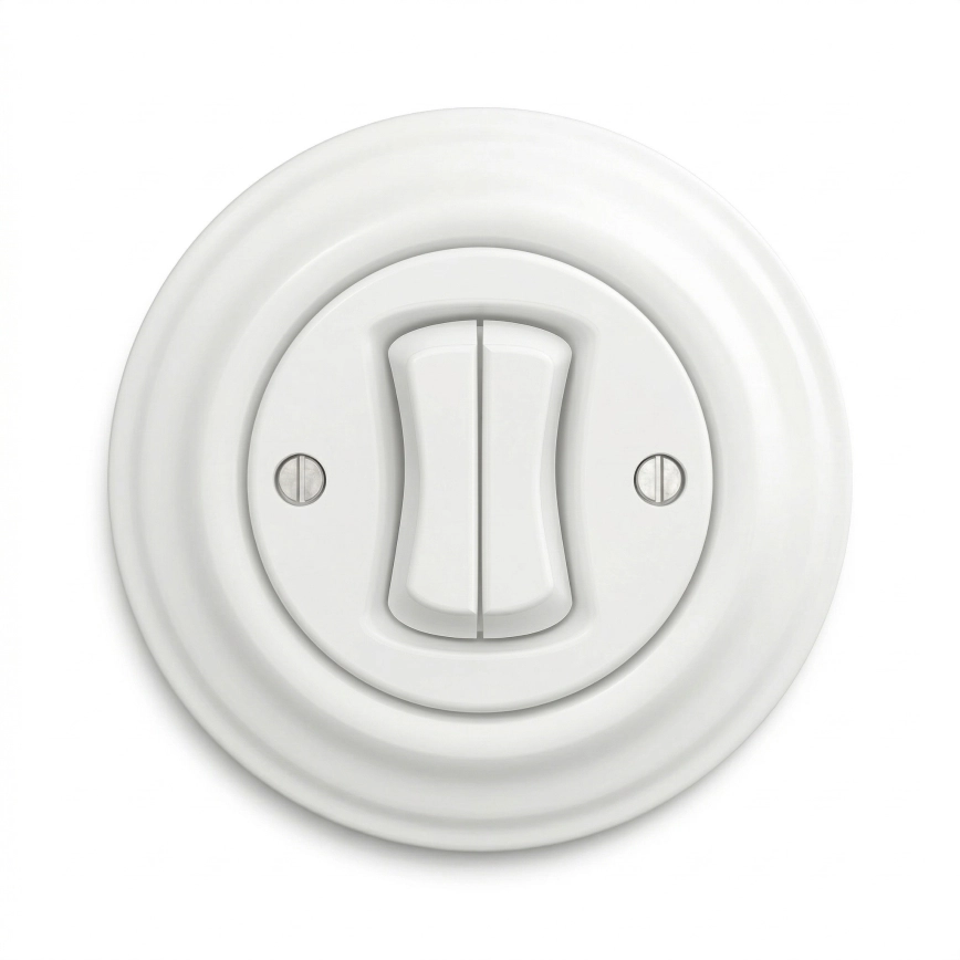 • Kliklap - retro dvigubas laiptų jungiklis su rėmeliu nr. 6+6, keraminės baltos spalvos