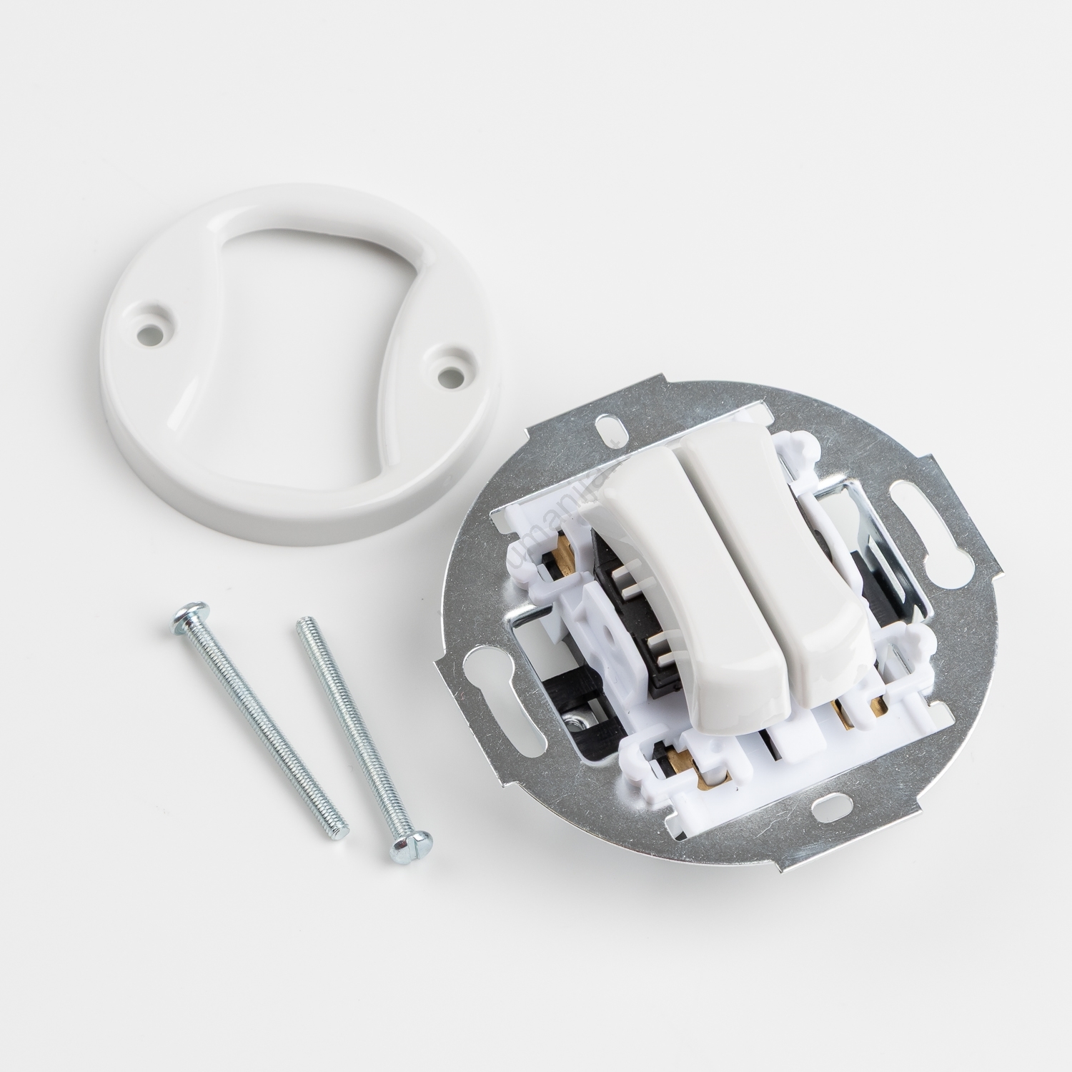 • Kliklap - Retro dvigubas laiptų jungiklis su rėmeliu Nr. 6+6 sniego baltas