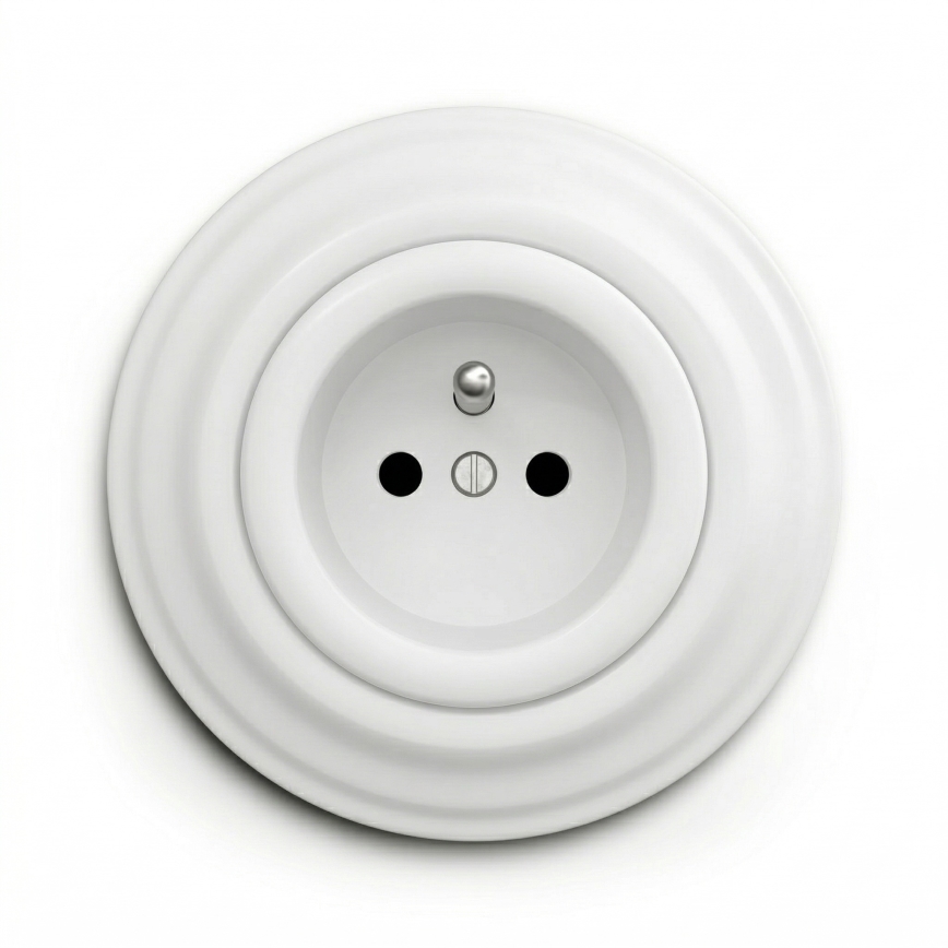 • Kliklap - Retro namų elektros lizdas su rėmeliu, 230 V, keraminis, baltas