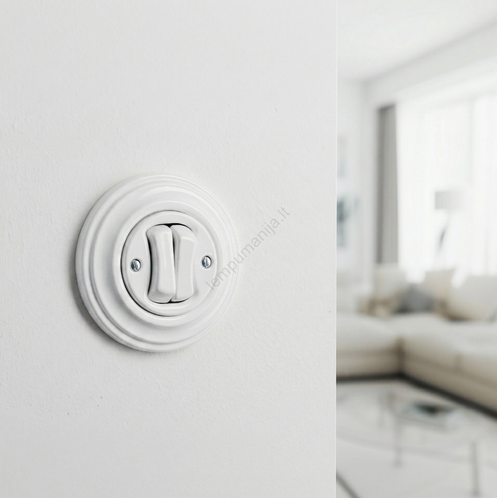 • Kliklap - Retro serijinis jungiklis su rėmeliu Nr. 5, keraminė balta