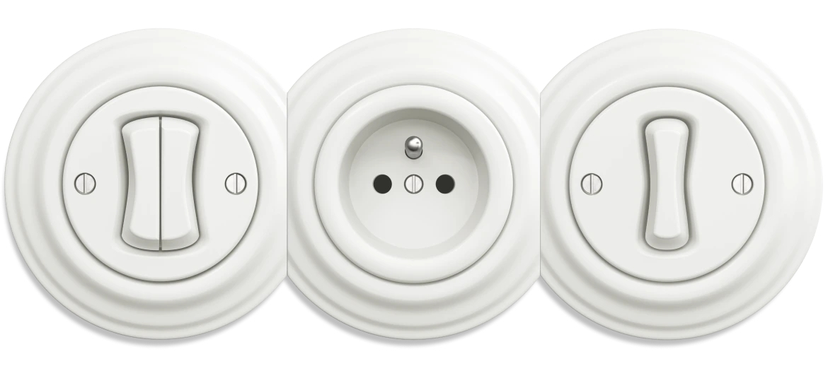 • Apvalus jungiklis keramikinės baltos spalvos atspalvyje.