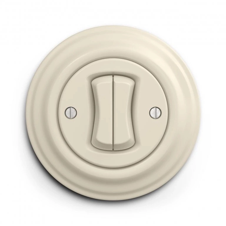 Kliklap – retro stiliaus dvigubas laiptų jungiklis su rėmeliu Nr. 6+6, smėlinės spalvos