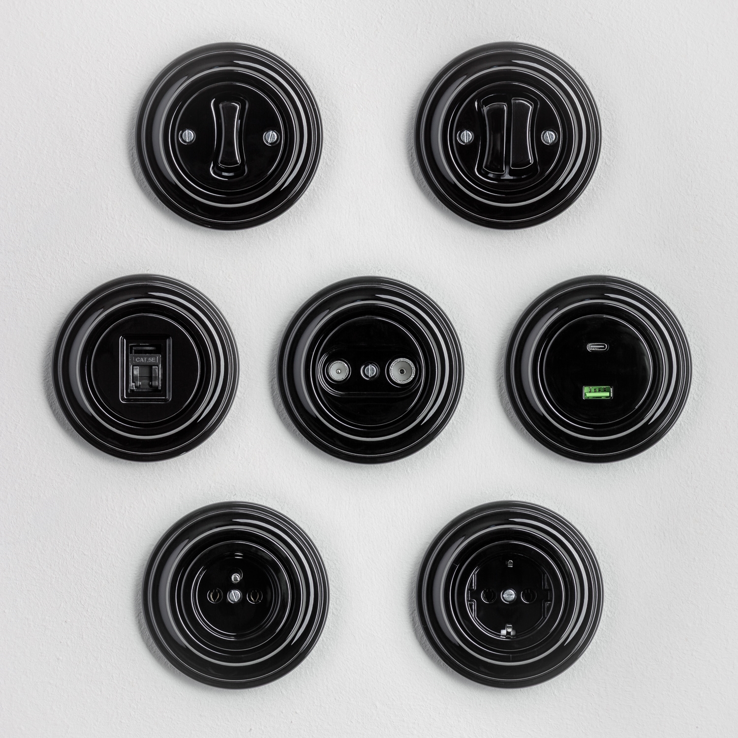 • Kliklap - Retro USB lizdas A+C su keraminiu rėmeliu, baltas