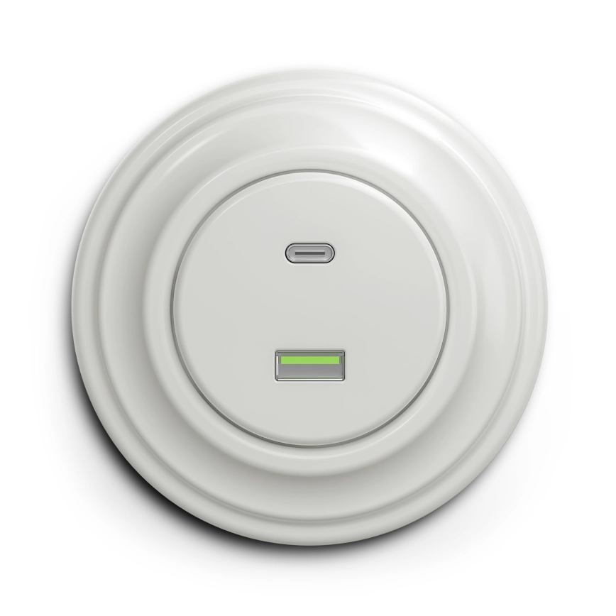 • Kliklap - Retro USB lizdas A+C su keraminiu rėmeliu, baltas