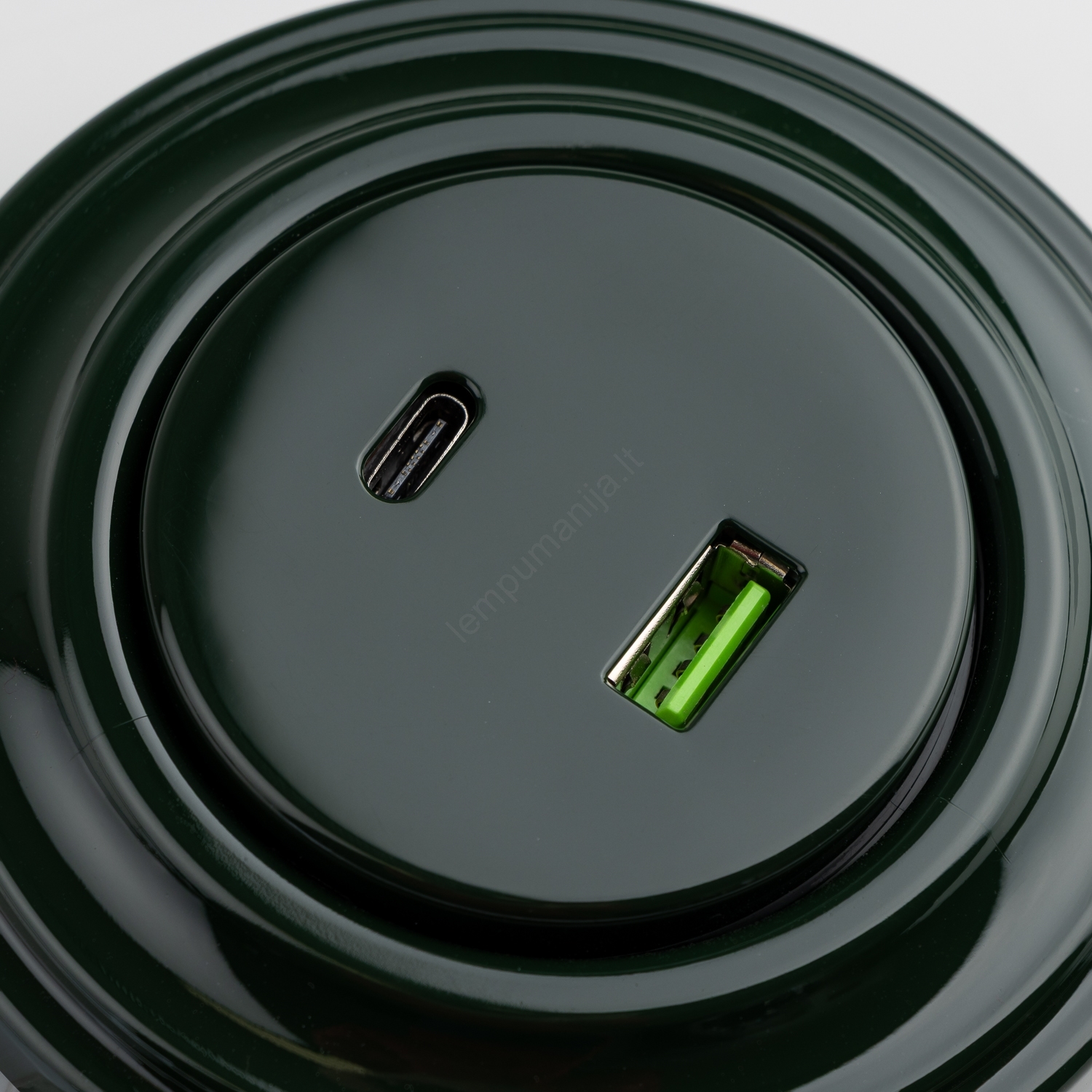 • Kliklap - Retro USB lizdas A+C su rėmeliu, žalias
