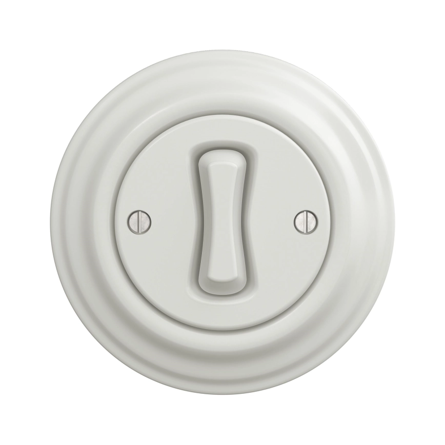 Kliklap - Retro vienpolinis jungiklis su rėmeliu Nr. 1, keraminės baltos spalvos