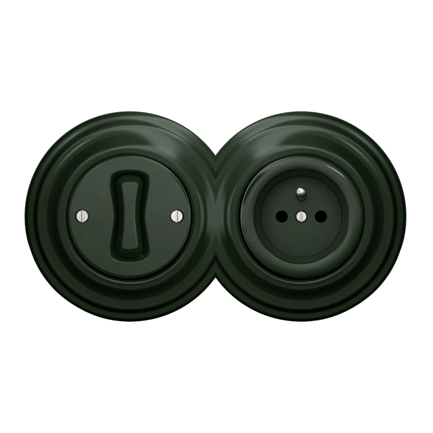 Kliklap - Retro vienpolinis jungiklis Nr. 1 ir 230 V lizdas su žaliu rėmeliu