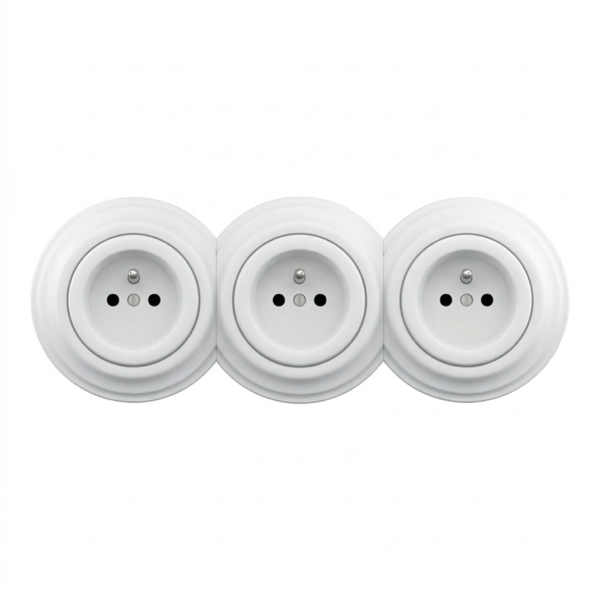 • Kliklap - Trigubas retro namų sieninis lizdas su rėmeliu, 230 V, keraminis, baltas