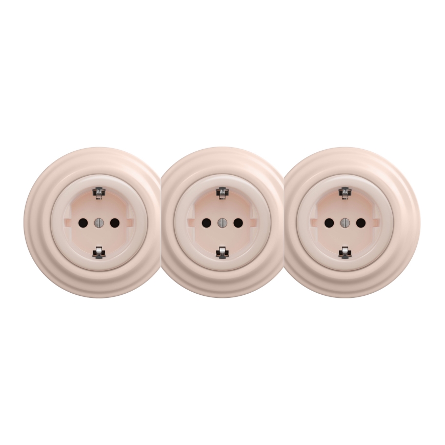 Kliklap - Triguba retro rozetė namams su SCHUKO rėmeliu 230V vintažinė rožinė