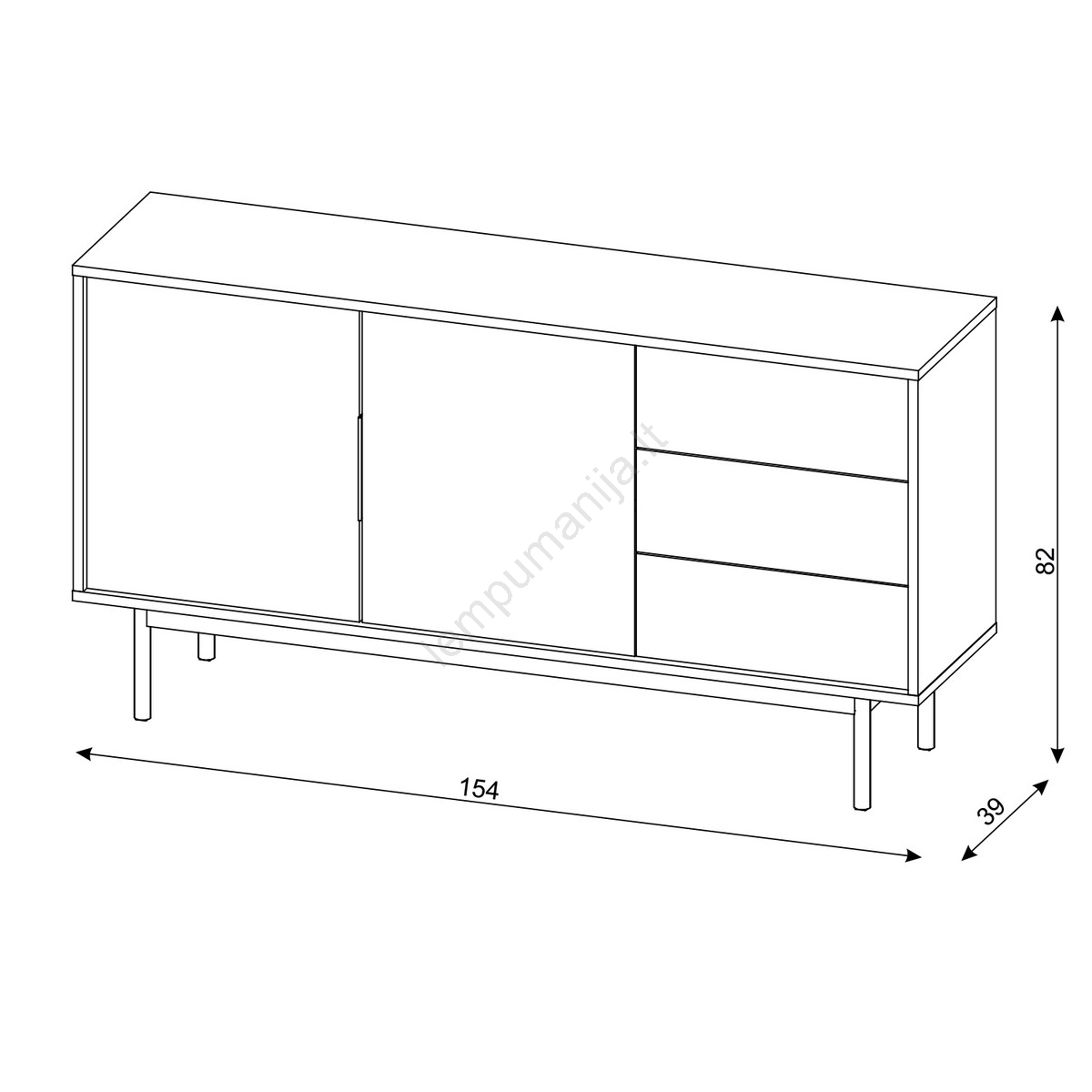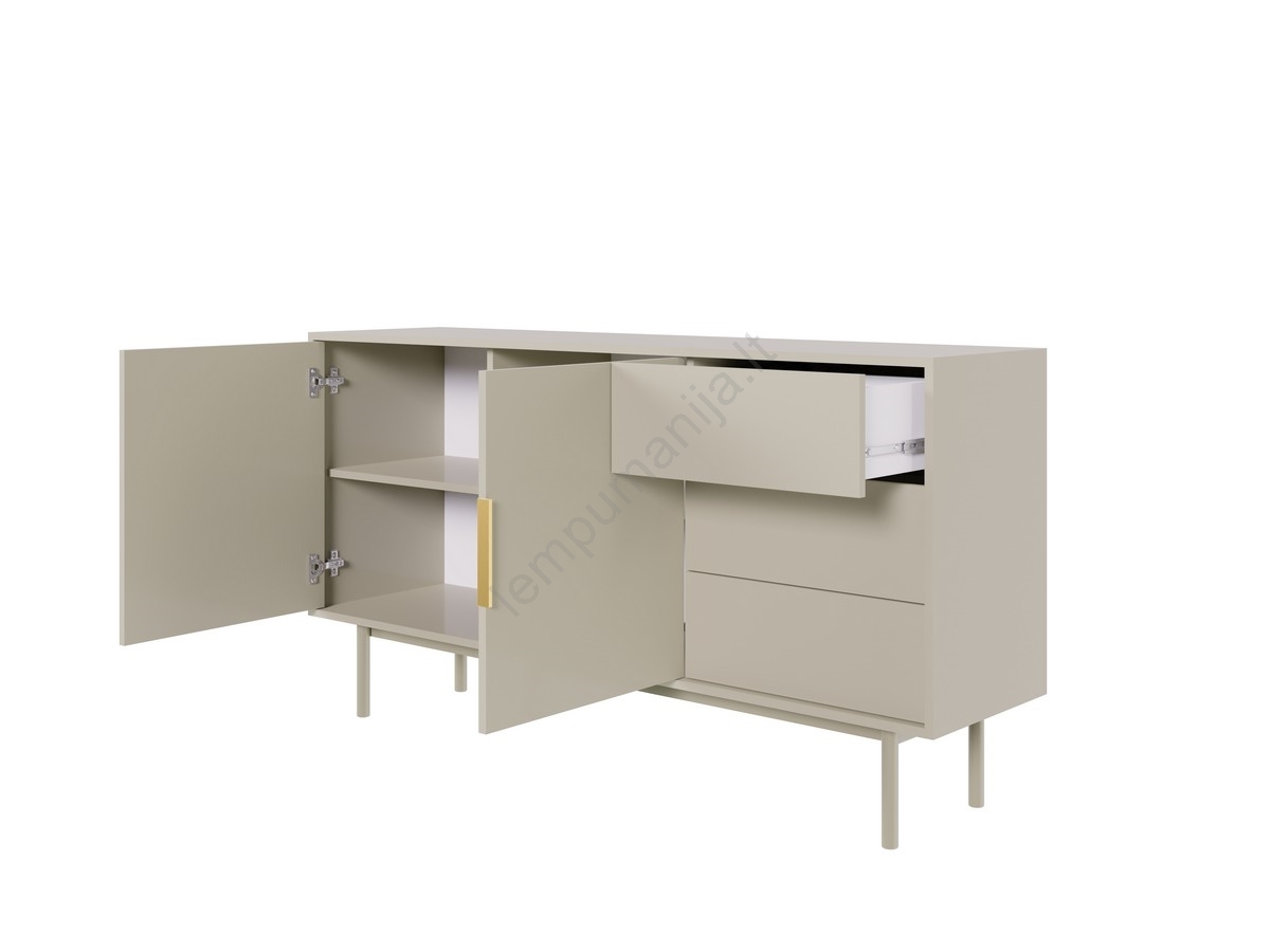 • Ji turi dvi dureles kairėje ir tris stalčius dešinėje, leidžiančius tvarkingai laikyti daiktus.