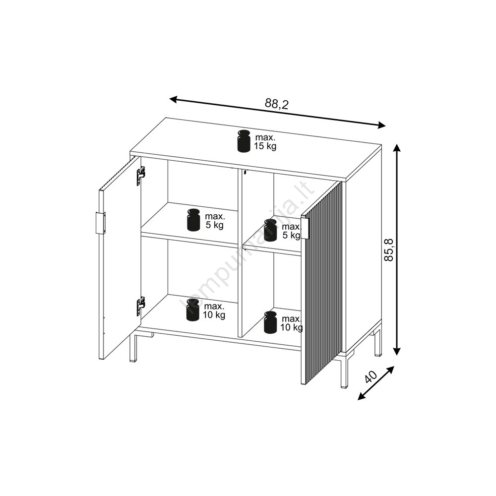• Turi keturias lentynas ir dvi dureles su vertikaliu briaunojimu.