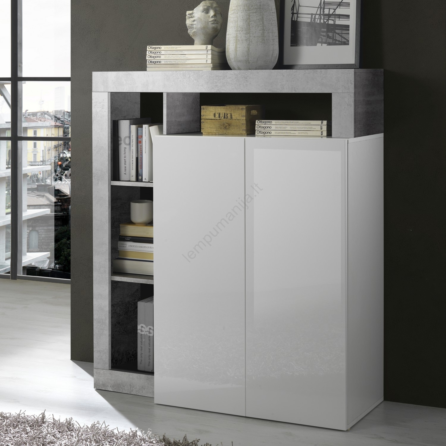 Komoda LENOR balta/pilka (betono efektas)