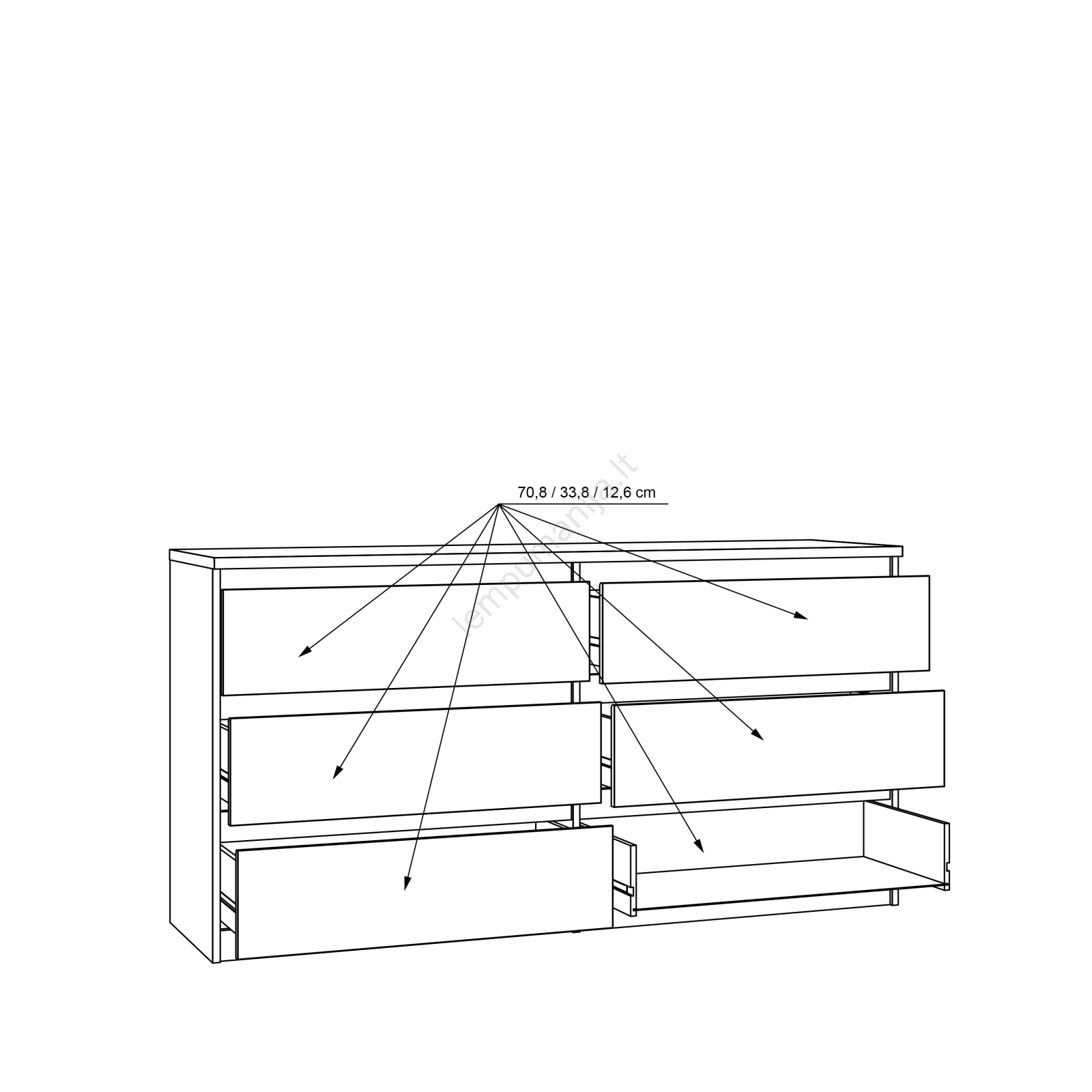 • Viršutinė plokštė yra pakankamai erdvi dekoracijoms, elektronikai ar kitiems būtiniems daiktams.